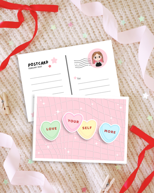 Candy Heart Postcard | Love Yourself More Affirmation Card